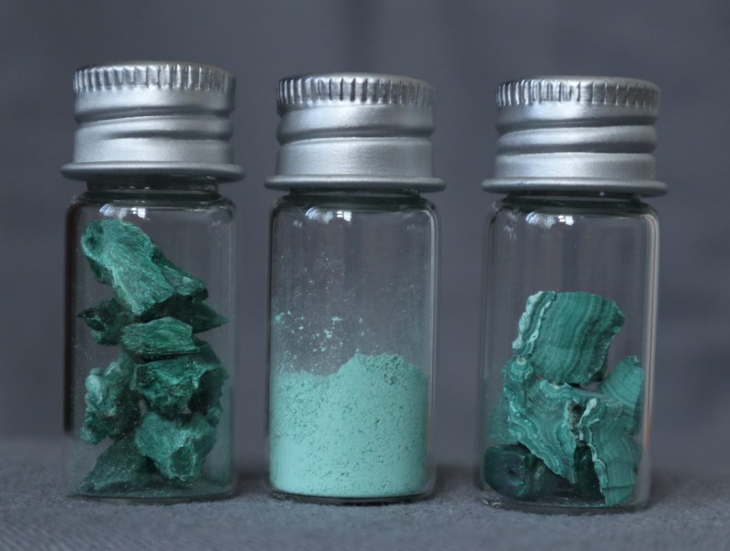 Malachit fibros, malachit pigment și malachit